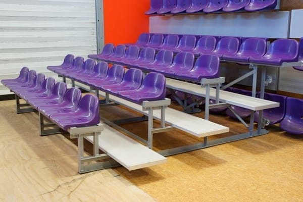 If you have been planning on using your spare room to open a theatre, there are a bunch of bleacher seat modules here. If my maths is correct (and it barely ever is), all told it adds up to seating for 610 in three different size configurations.